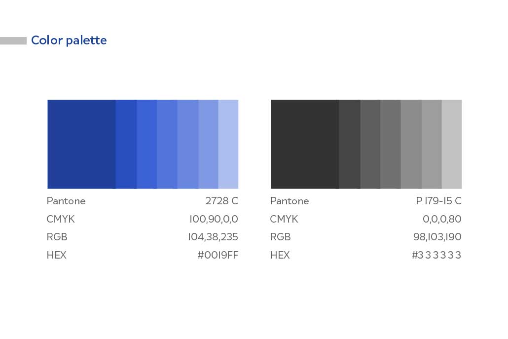 - HEX, RGB, CMYK, Pantone codes